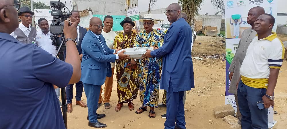 Il s’agit de la remise des infrastructures du projet des services de base dans le cadre du renforcement de la résilience des communautés vulnérables des bidonvilles de la commune d’Abobo.