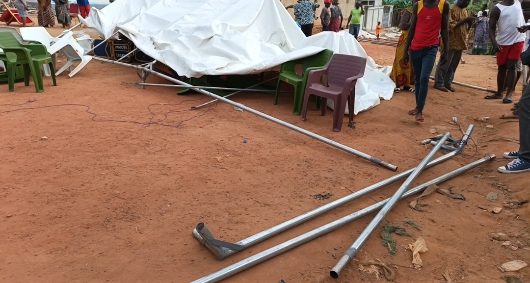 – Les bâches et les chaises détruites par des individus armés de gourdins et d’armes blanches en présence des gendarmes.