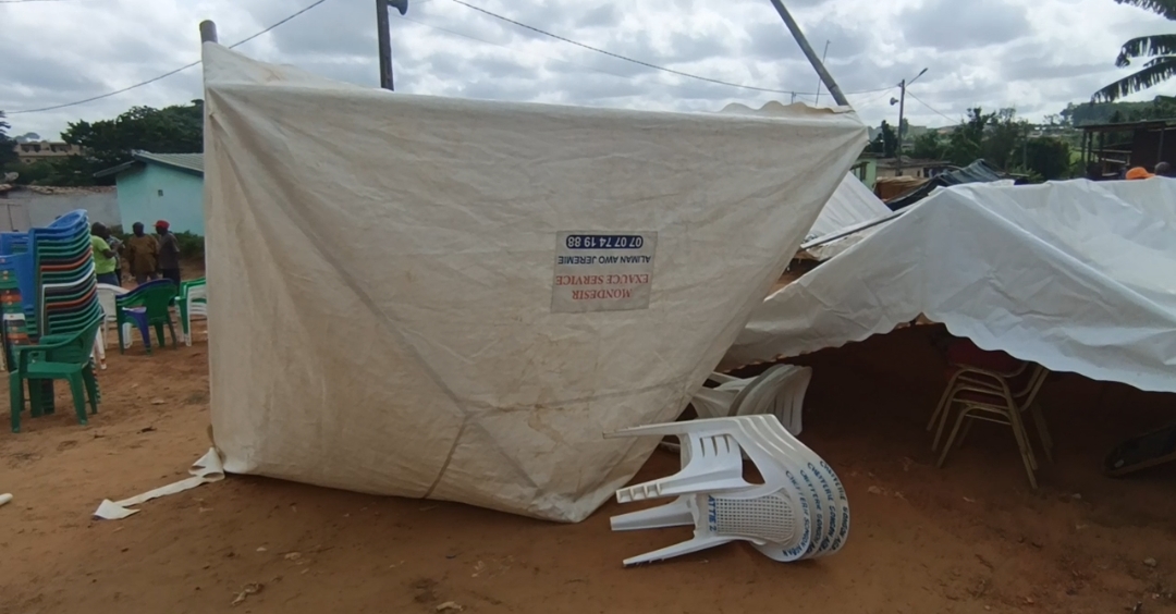 Le jour J, le village était déjà bondé de monde aux premières heures de la journées. Les natifs de Songon Agban Attié 2, qui se résident à l’intérieur du pays et à Abidjan, ont pris d’assaut le village. C’est dans cette ambiance festive, alors que les organisateurs étaient à pied d’œuvre , à la demande du Nanan, pour la mise en place, une bande d’une quinzaine d’individus firent irruption sur la place publique pour détruire les bâches et les chaises, sous le regard inerte de la gendarmerie commise pour sécuriser le site.