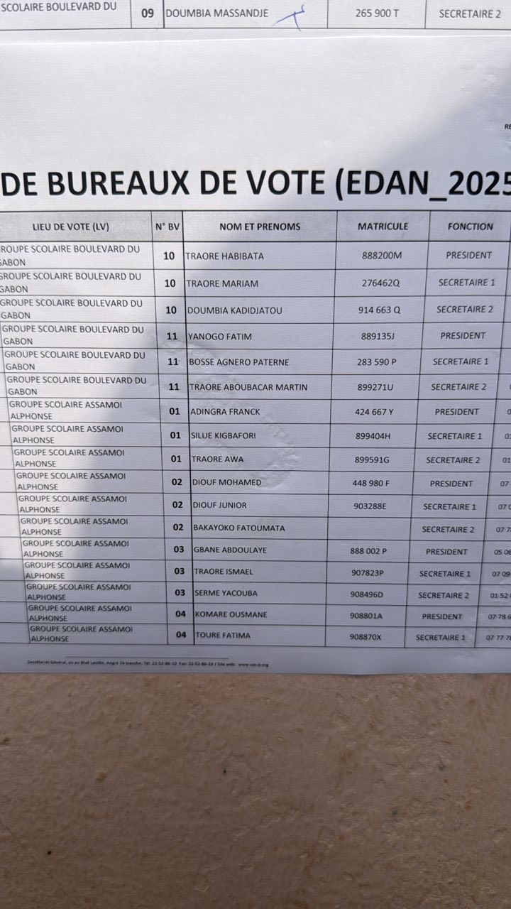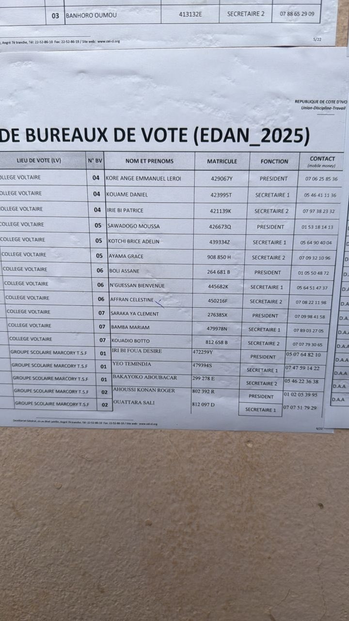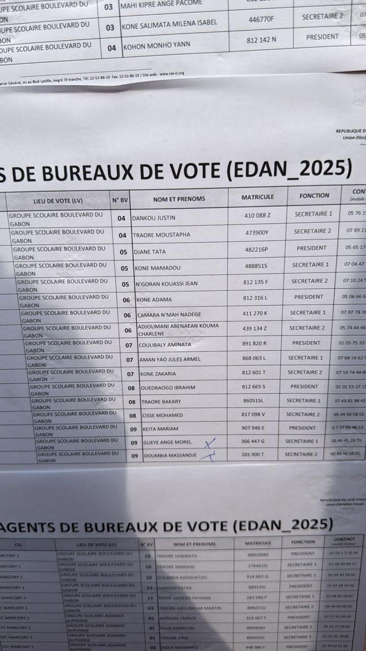 À Marcory, les élections législatives de 2025 ne sont que contestables : Le décret n°2025-776 du 1er octobre 2025 du Président de la République est pourtant clair : les présidents et assesseurs des bureaux de vote doivent être des fonctionnaires, agents de l’État ou assimilés, légalement réquisitionnés pour garantir la neutralité et la crédibilité du scrutin.