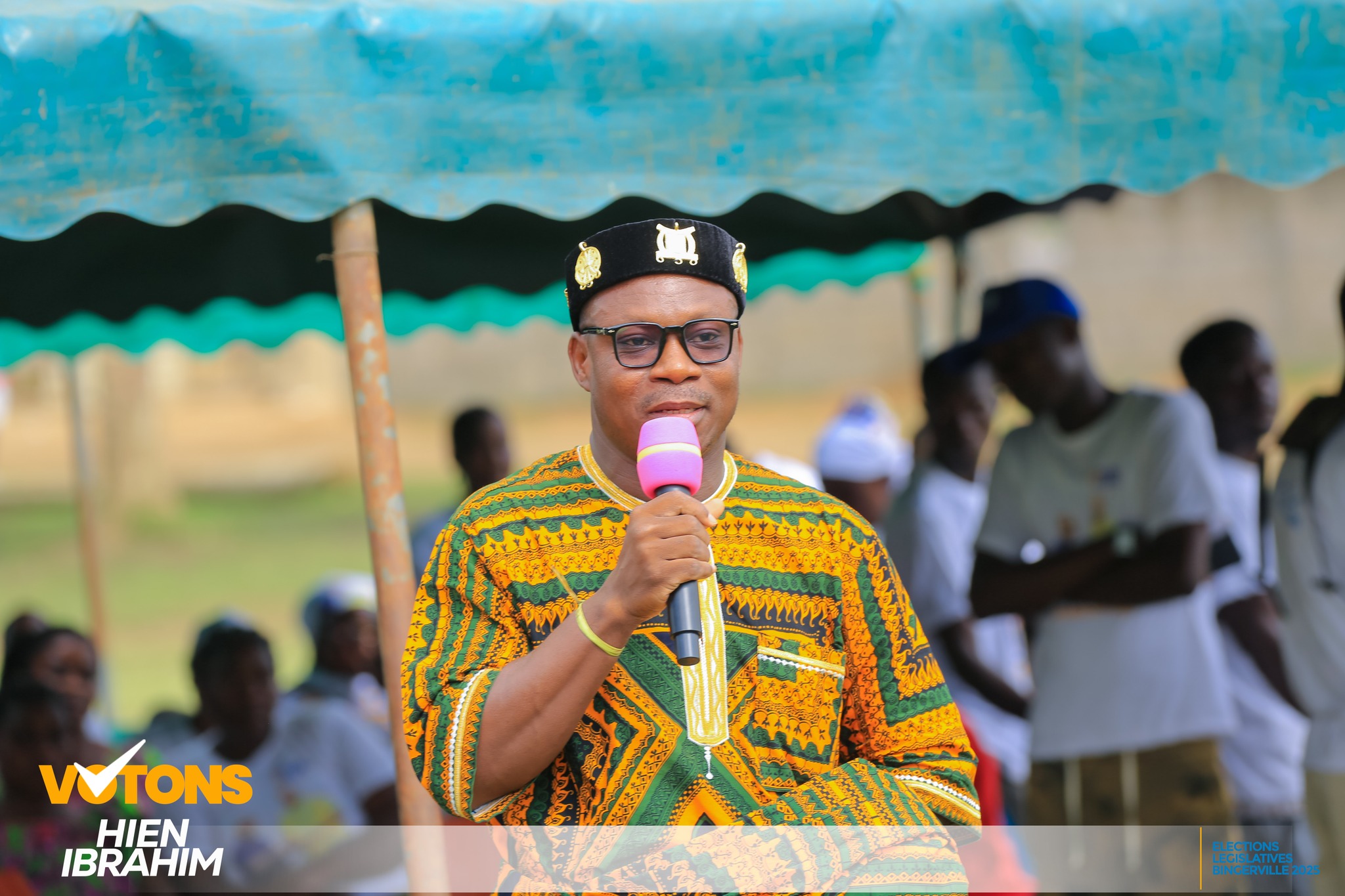 En choisissant la cité ELOKA-To pour ce lancement, Rodrigue Anon, affiche sa reconnaissance aux âmes généreuses qui ont hissé plus haut leur démarche. Fils du village Akouai Santai et membre de la chefferie traditionnelle, il est revenu sur l’association de son image à celle de Hien Ibrahim, très visible sur le terrain qu’il considère fidèle à ses engagements : « Parce qu’une campagne qui veut représenter le peuple doit d’abord honorer son histoire, ses valeurs et ses traditions », a fait remarquer Rodrigue Ano.