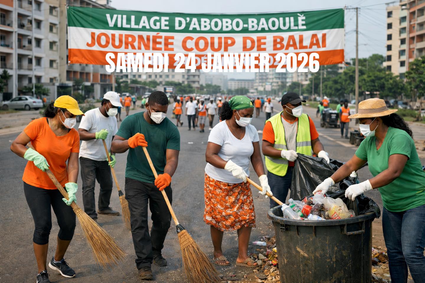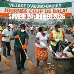 Souvent désigné comme village moderne ou Cité de grâce, Abobo-Baoulé se distingue par un amenagement urbain structuré qui contraste avec l’urbanisation spontanée de certains quartiers environnants. Ce village reconnu pour sa propreté et son cadre de vie sain, l’est grâce à l’éducation en matière de salubrité, de ses habitants. Ce samedi 24 janvier 2026, l’Association Abobo Baoulé en Action pour le Développement (ABAD), sous l’égide de la Chefferie dirigée par l’honorable AKRE Marc Nandjui, a procédé à une “Opération Coup de Balai”.